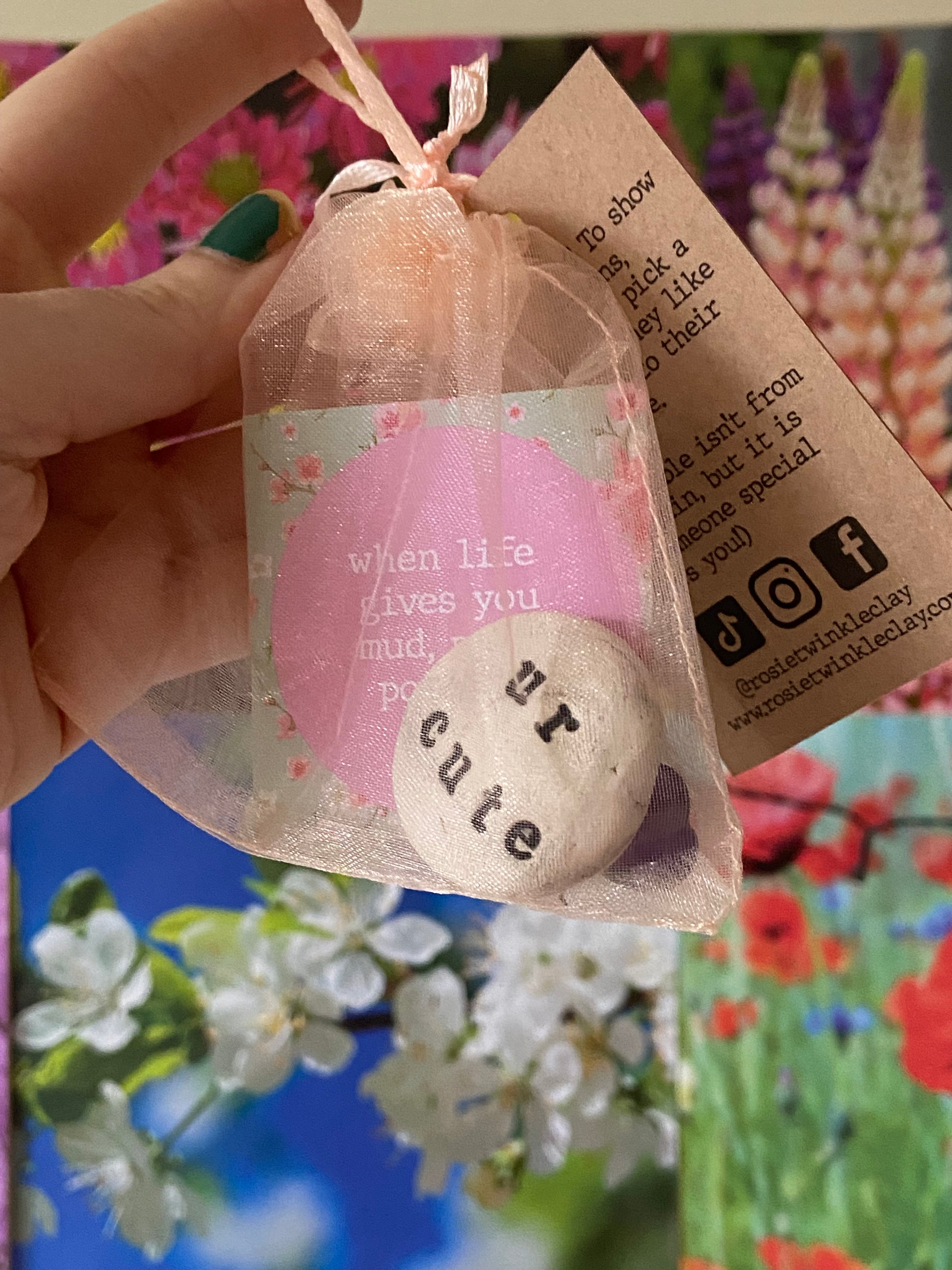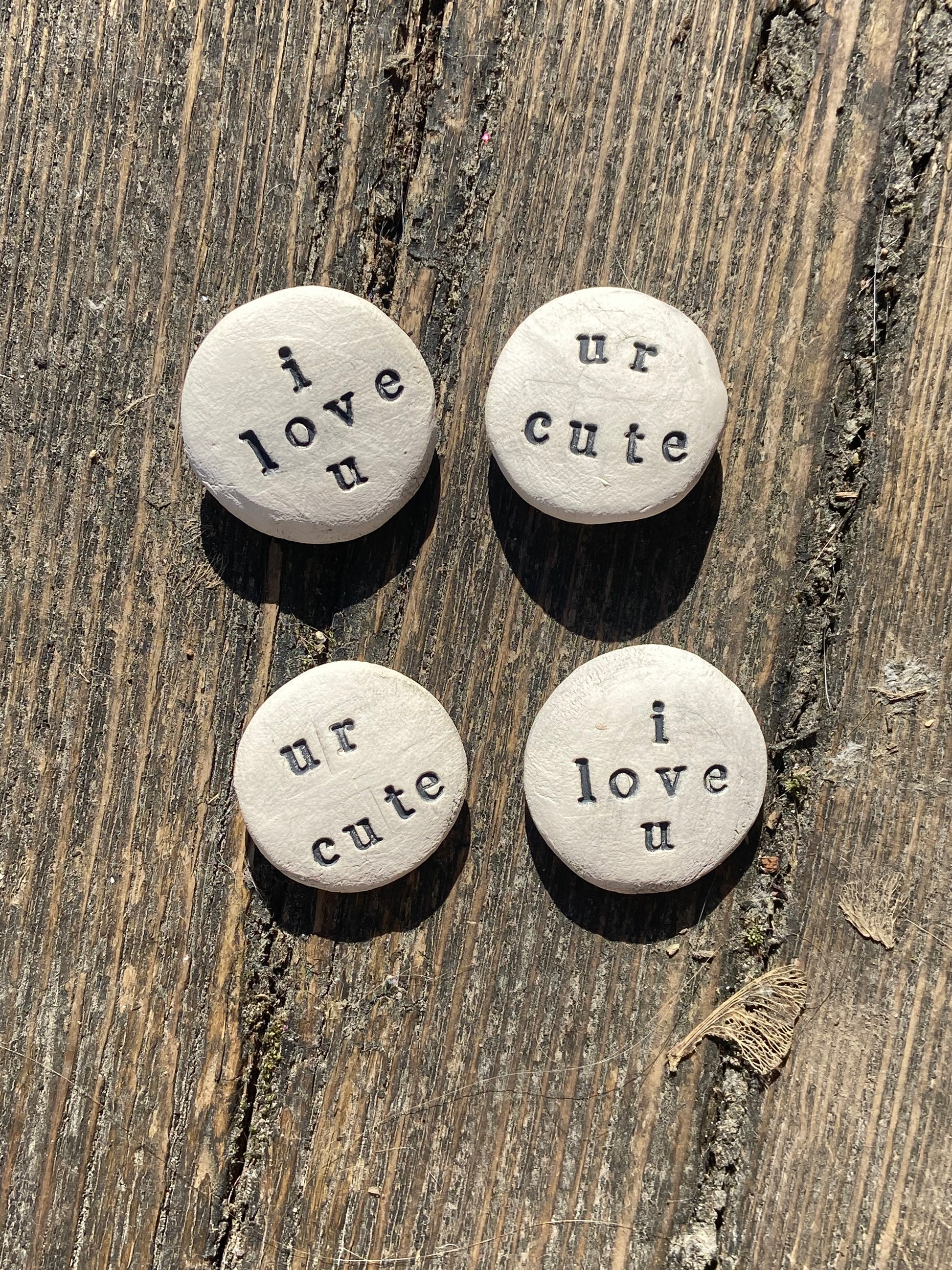 Ceramic affirmations to gift to yourself or other loved ones in your life! Each pebble is hand made so are all unique, and serve as a handheld reminder of your value! They are made out of stoneware clay and black stain inlayed into imprinted letters, each done by hand to relay a message from my heart to yours 💖✨